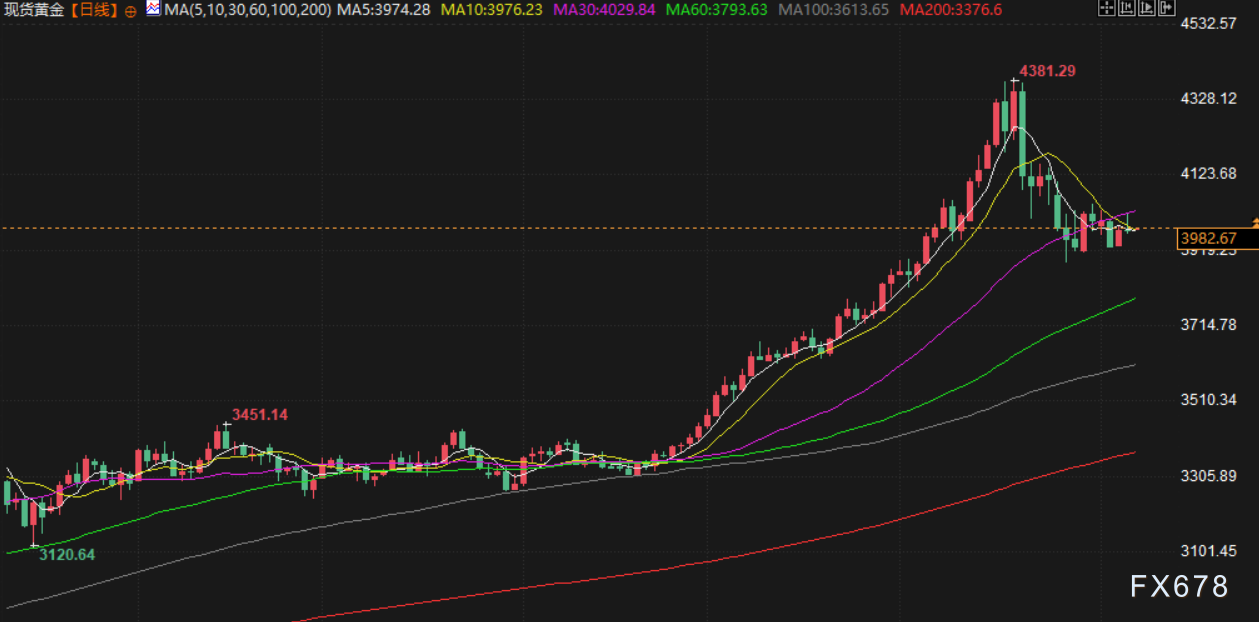 受美元走软及避险需求回升推动,金价周四延续涨势。现货黄金盘中重回4000上方逼近4020美元/盎司,12月交割的美国黄金期货则基本持平于3991美元。